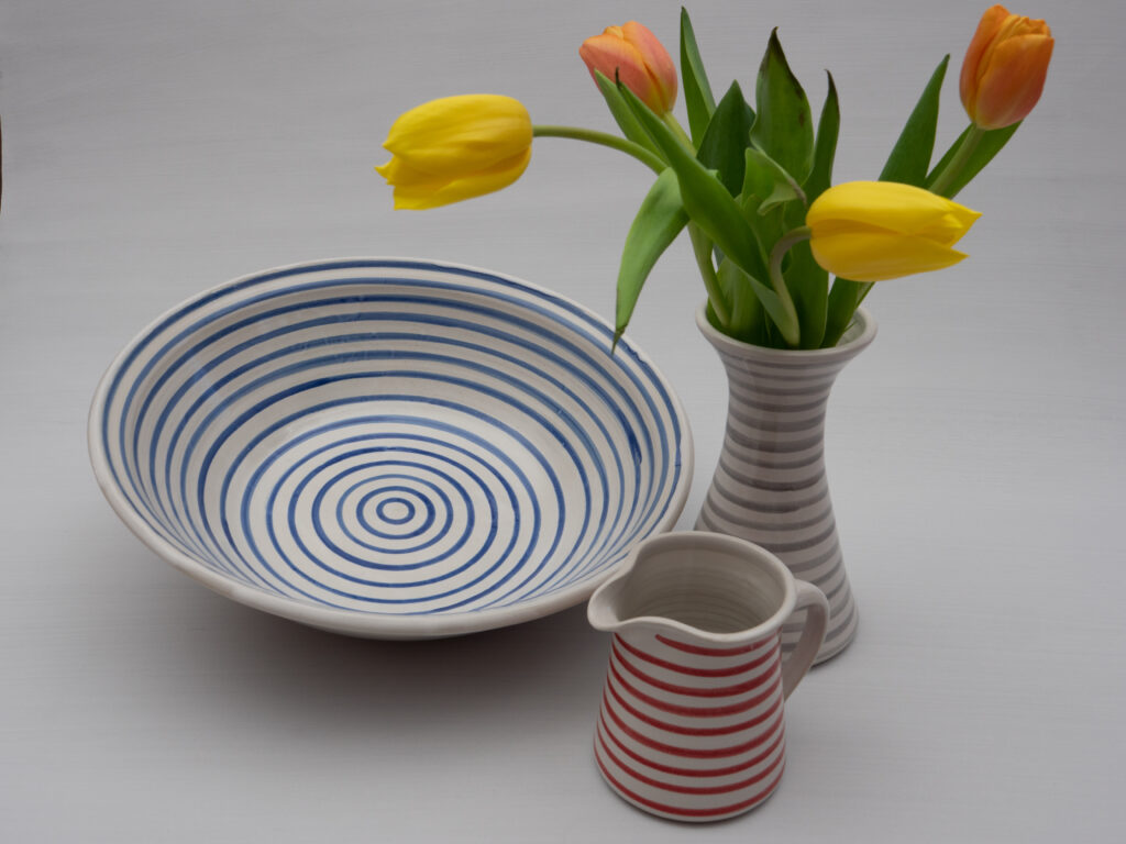 In der Töpferei in Aschau finden Sie die Werkstatt und das Geschäft unter einem Dach. Hier wird Keramik in Steinzeugqualität hergestellt, vorwiegend Geschirr, aber auch Accessoires wie Windlichter, Dekostücke und Gartenkeramik.Die Keramik wird bei 1230°C gebrannt, sie ist somit dicht und nicht stoßanfällig, kann in die Spülmaschine und Mikrowelle gestellt werden. Die Glasuren werden selbst hergestellt, die Keramik ist garantiert blei- und cadmiumfrei. Lebensmittelechtheit ist garantiert. Über Ihren Besuch in meinem Laden oder auf meiner Website freue ich mich sehr.
